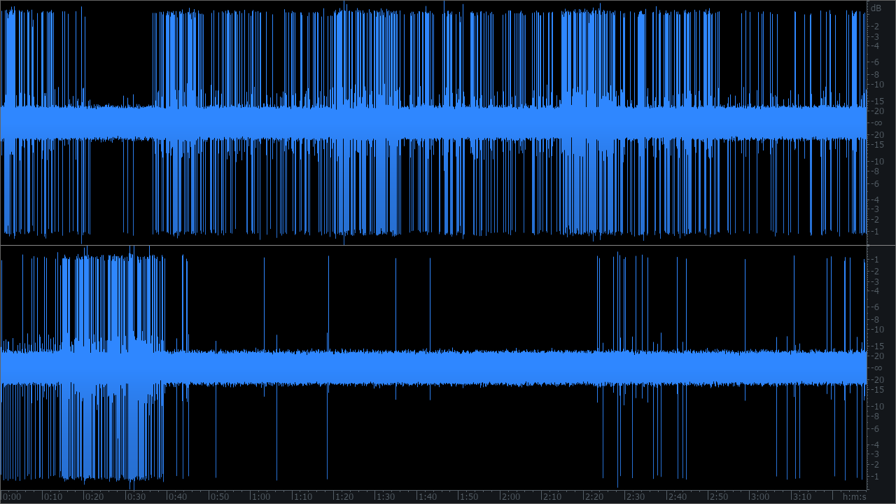 Die Impulse, die vom linken und rechten Kanal kommen, stehen für die Wörter Arbeit und Geld. Das Rauschen steht für alle anderen Wörter.