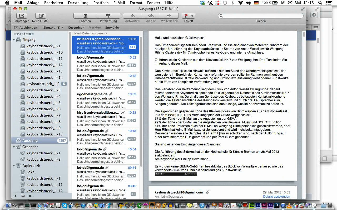 29% der Töne – per E-Mail an die Angestellten von Universal Edition und Schott Edition,