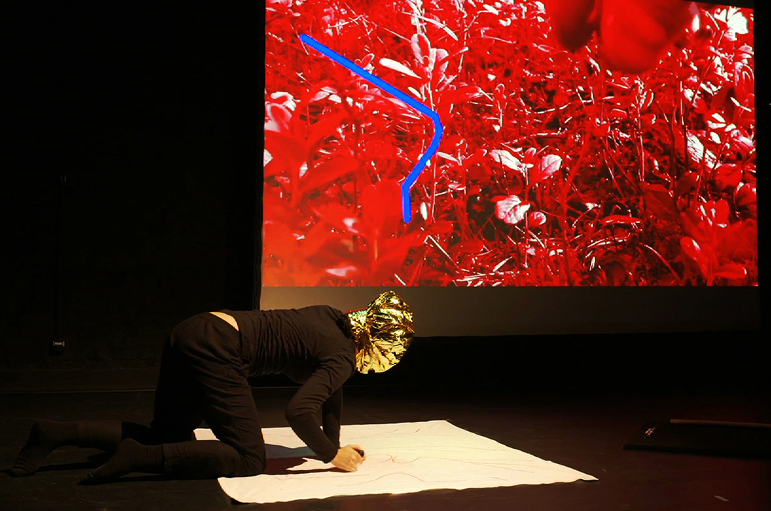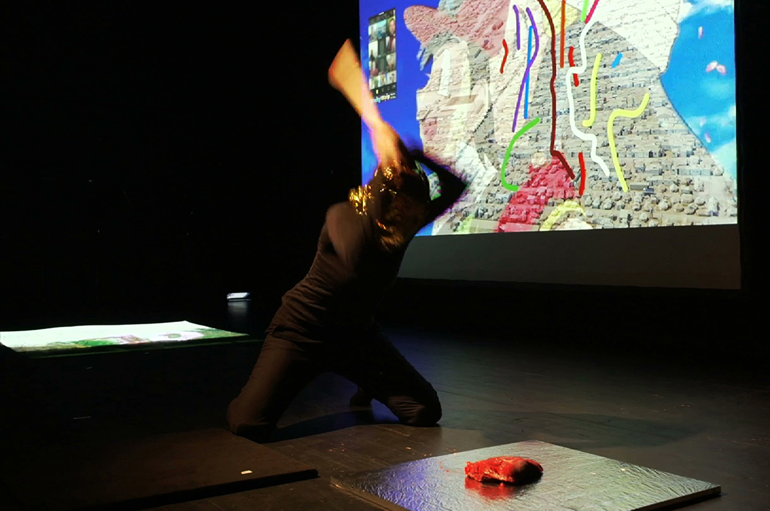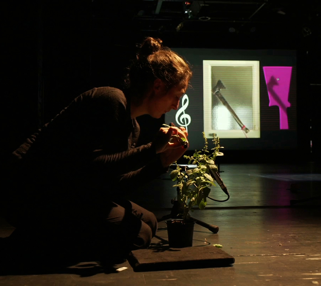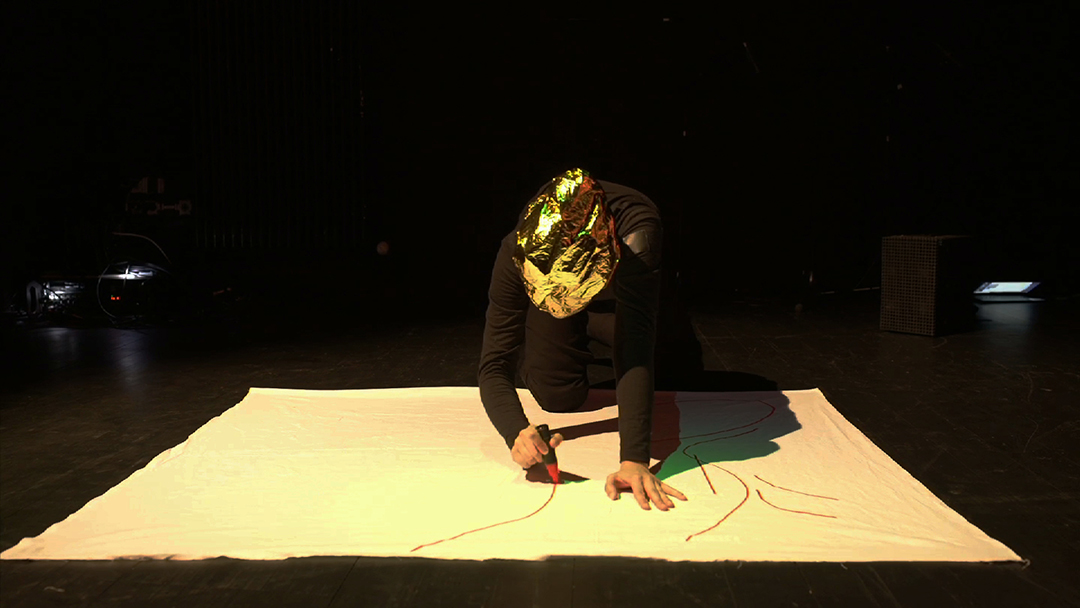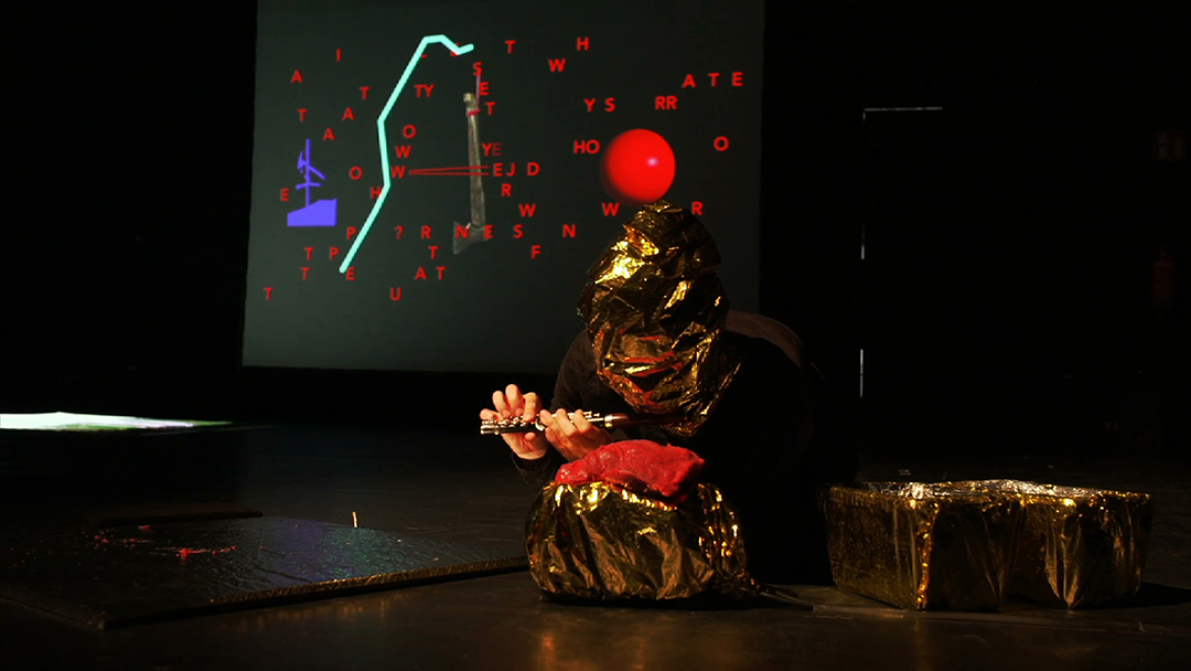 Durch die räumliche Verteilung von Plateuas entsteht eine Polyphonie nicht nur der Klänge, der Bilder und der Gesten, sondern auch des Raumes selbst. Delay-Strukturen und Audio-Live-Aufnahmen schaffen eine Zeitstruktur aus Flash- and Backforwards.